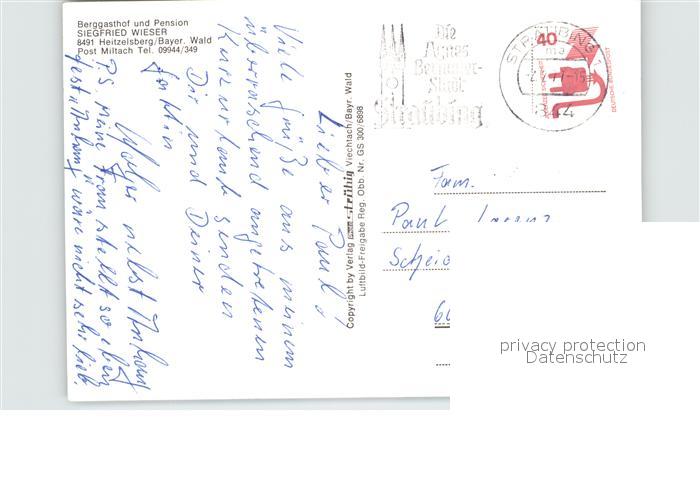 72512484 alte Postkarte Heitzelsberg Berggasthof und Pension Siegfried Wieser postalisch gelaufen Erhaltung siehe scans KatCode: 11110009372143