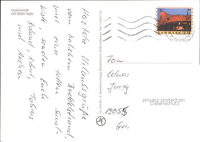 old postcard Hejlsminde Bootshafen Strandpartie postalisch gelaufen Erhaltung siehe scans