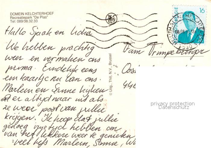 73519012 carte postale Helchteren Domein Kelchterhoef Recreatiepark De Plas postalisch gelaufen Erhaltung siehe scans [FriedD77] KatCode: 11070072008605