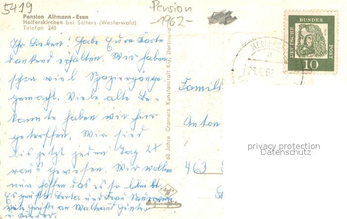 73696205 alte Postkarte Helferskirchen Pension Altmann Esen Panorama Gastraeume postalisch gelaufen Erhaltung siehe scans [WerneD78] KatCode: 11110007143028