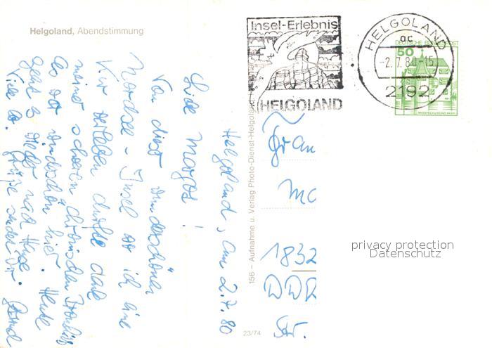 73294379 alte Postkarte Helgoland Abendstimmung postalisch gelaufen Erhaltung siehe scans [FriedD77] KatCode: 11110001056025