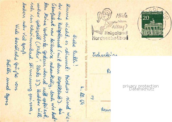 72860135 alte Postkarte Helgoland Felsen Bruecke Oberland Klippenwand Reede Schwimmbad Kirche Kurhaus Musikpavillon Gedicht postalisch gelaufen Erhaltung siehe scans [FriedD77] KatCode: 11110001056025