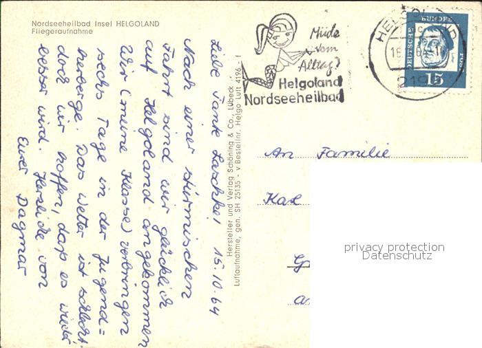 alte Postkarte Helgoland Fliegeraufnahme postalisch gelaufen Erhaltung siehe scans