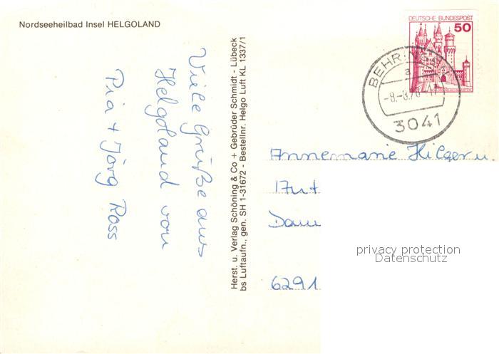 73190262 alte Postkarte Helgoland Fliegeraufnahme postalisch gelaufen Erhaltung siehe scans [NatalD47] KatCode: 11110001056025