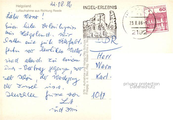 73088502 alte Postkarte Helgoland Fliegeraufnahme postalisch gelaufen Erhaltung siehe scans [NatalD47] KatCode: 11110001056025