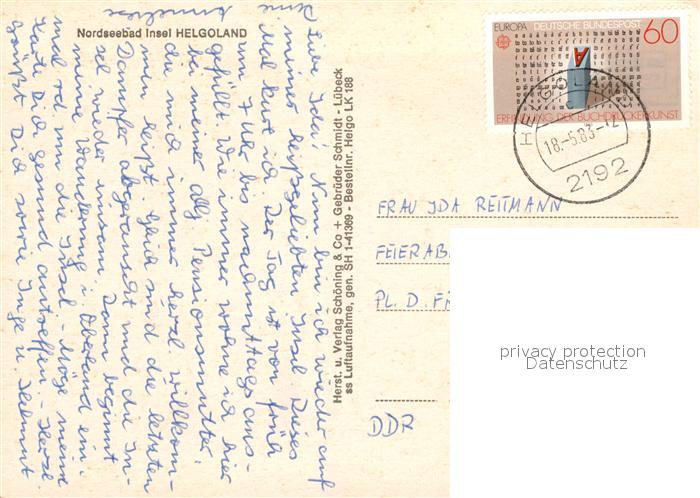 73010272 alte Postkarte Helgoland Fliegeraufnahme mit Baederschiffen auf Reede postalisch gelaufen Erhaltung siehe scans [WerneD78] KatCode: 11110001056025