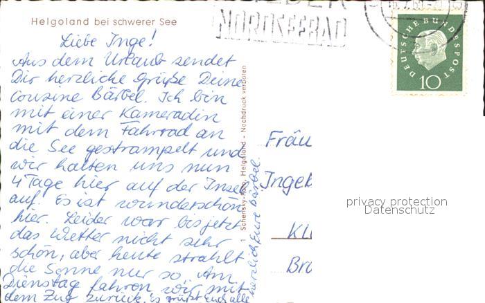 72073997 alte Postkarte HELGOLAND Insel Schleswig-Holstein bei schwerer See postalisch gelaufen Erhaltung siehe scans KatCode: 11110001056025