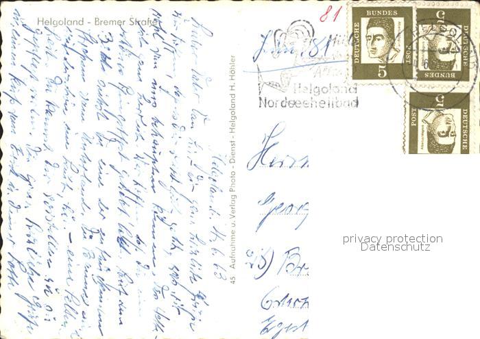 72027449 alte Postkarte HELGOLAND Insel Schleswig-Holstein Bremer Strasse postalisch gelaufen Erhaltung siehe scans KatCode: 11110001056025