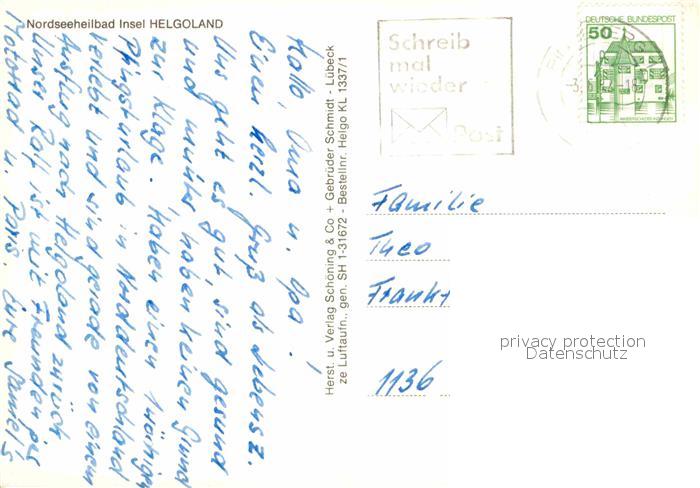 72750498 alte Postkarte HELGOLAND Insel Schleswig-Holstein Fliegeraufnahme postalisch gelaufen Erhaltung siehe scans [LiesaD40] KatCode: 11110001056025