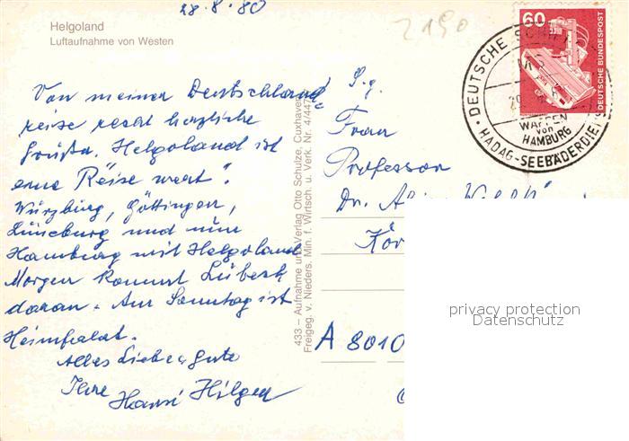 72853053 alte Postkarte HELGOLAND Insel Schleswig-Holstein Fliegeraufnahme postalisch gelaufen Erhaltung siehe scans [NatalD47] KatCode: 11110001056025