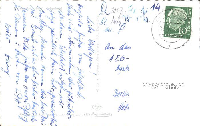 72592303 alte Postkarte HELGOLAND Insel Schleswig-Holstein Fliegeraufnahme postalisch gelaufen Erhaltung siehe scans [AndreD76] KatCode: 11110001056025