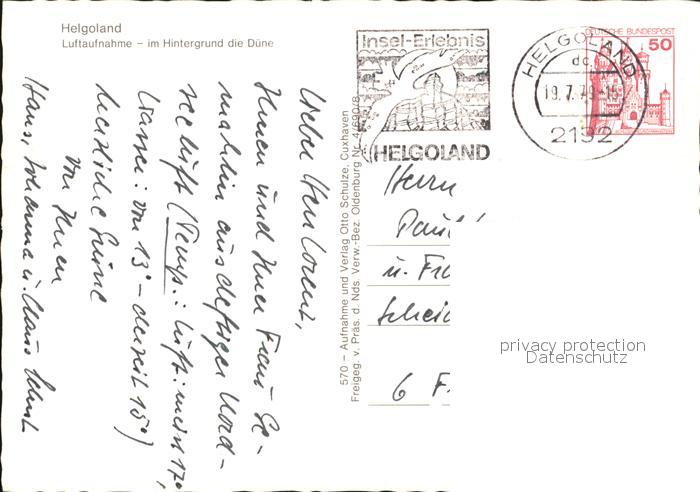 72570704 alte Postkarte HELGOLAND Insel Schleswig-Holstein Fliegeraufnahme postalisch gelaufen Erhaltung siehe scans [AndreD76] KatCode: 11110001056025