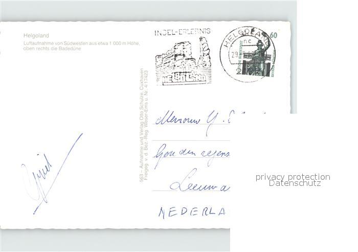 72480313 alte Postkarte HELGOLAND Insel Schleswig-Holstein Fliegeraufnahme postalisch gelaufen Erhaltung siehe scans KatCode: 11110001056025