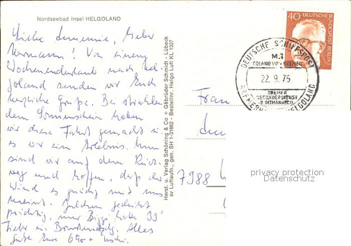 72325772 alte Postkarte HELGOLAND Insel Schleswig-Holstein Fliegeraufnahme postalisch gelaufen Erhaltung siehe scans KatCode: 11110001056025