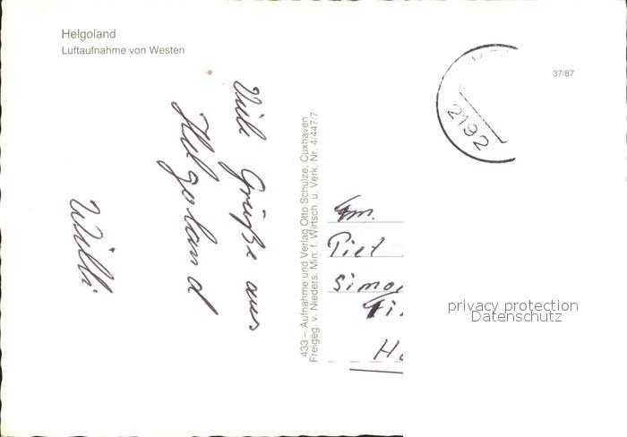 72283379 alte Postkarte HELGOLAND Insel Schleswig-Holstein Fliegeraufnahme postalisch gelaufen Erhaltung siehe scans KatCode: 11110001056025