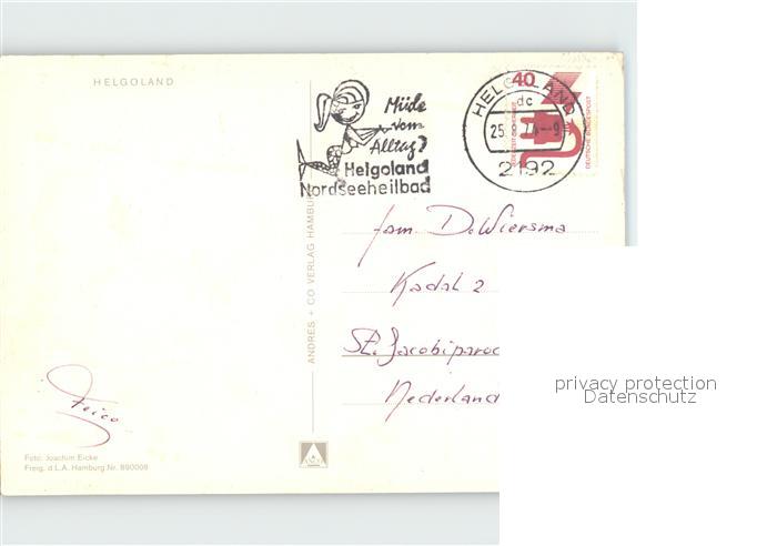 72259119 alte Postkarte HELGOLAND Insel Schleswig-Holstein Fliegeraufnahme postalisch gelaufen Erhaltung siehe scans KatCode: 11110001056025