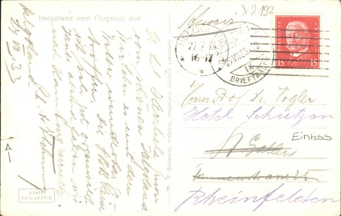 41298272 HELGOLAND Insel Schleswig-Holstein Fliegeraufnahme Hafen postalisch gelaufen Alte Ansichtskarte Postkarte alte Postkarte hz_L Katcode 11110001056025