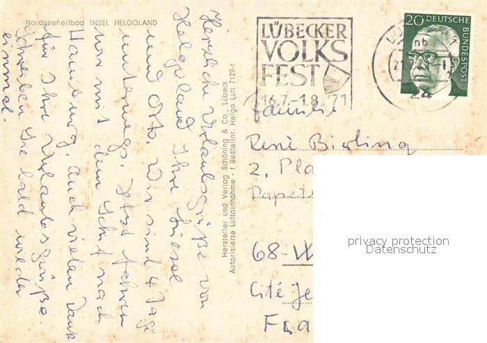 72793121 alte Postkarte HELGOLAND Insel Schleswig-Holstein Fliegeraufnahme Hafen postalisch gelaufen Erhaltung siehe scans [LiesaD40] KatCode: 11110001056025