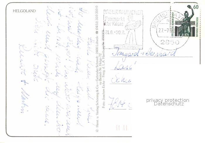72756258 alte Postkarte HELGOLAND Insel Schleswig-Holstein Fliegeraufnahme mit Hafen Felsen postalisch gelaufen Erhaltung siehe scans [LiesaD40] KatCode: 11110001056025