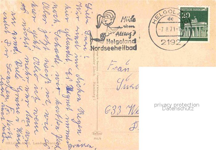 72770009 alte Postkarte HELGOLAND Insel Schleswig-Holstein Landungsbruecke postalisch gelaufen Erhaltung siehe scans [AndreD76] KatCode: 11110001056025