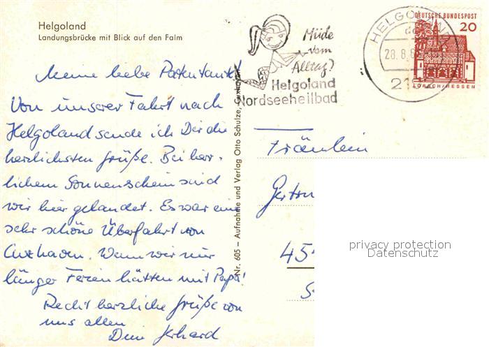 72622754 alte Postkarte HELGOLAND Insel Schleswig-Holstein Landungsbruecke mit Blick auf den Falm postalisch gelaufen Erhaltung siehe scans [WerneD78] KatCode: 11110001056025