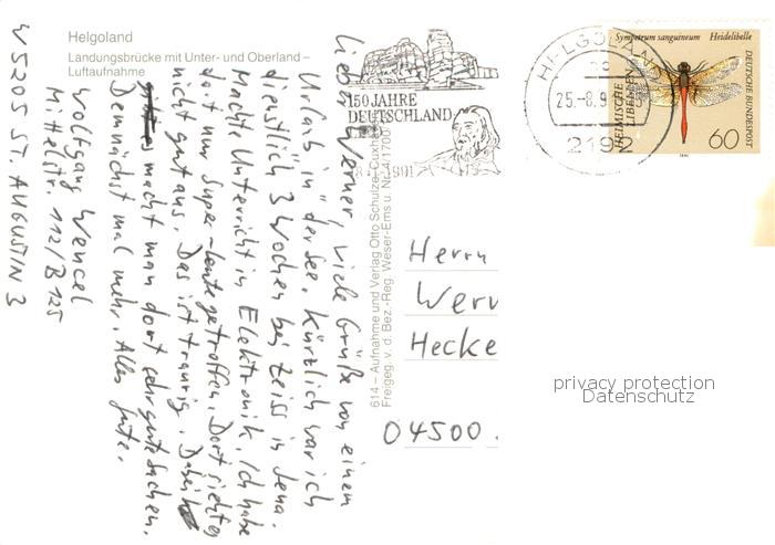 73752437 HELGOLAND Insel Schleswig-Holstein Landungsbruecke mit Unter und Oberland Fliegeraufnahme postalisch gelaufen Erhaltung siehe scans [WerneD78] alte Postkarte Wern Katcode 11110001056025