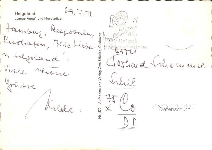 72464176 alte Postkarte HELGOLAND Insel Schleswig-Holstein Lange Anna Nordspitze Fliegeraufnahme postalisch gelaufen Erhaltung siehe scans KatCode: 11110001056025