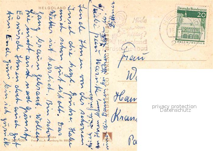 72827131 alte Postkarte HELGOLAND Insel Schleswig-Holstein Nordseeinsel Fliegeraufnahme postalisch gelaufen Erhaltung siehe scans [FriedD77] KatCode: 11110001056025