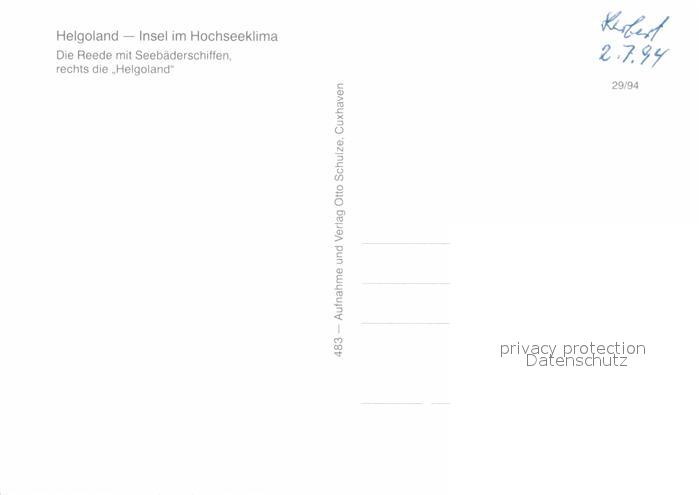 72617784 HELGOLAND Insel Schleswig-Holstein Reede Seebaederschiffen postalisch nicht gelaufen Erhaltung siehe scans [NatalD47] KatCode: 11110001056025