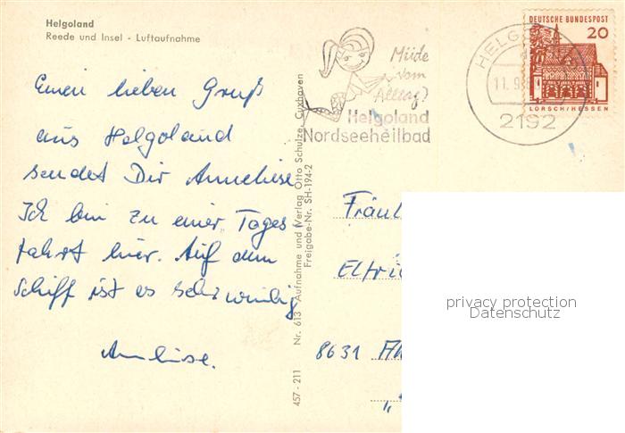 73768652 HELGOLAND Insel Schleswig-Holstein Schiffe auf Reede und Insel Fliegeraufnahme postalisch gelaufen Erhaltung siehe scans [WerneD78] alte Postkarte Wern Katcode 11110001056025