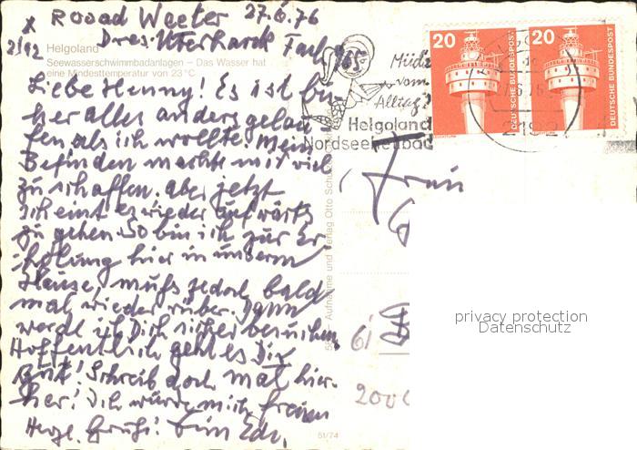 72262170 alte Postkarte HELGOLAND Insel Schleswig-Holstein Seewasserschwimmbad postalisch gelaufen Erhaltung siehe scans KatCode: 11110001056025