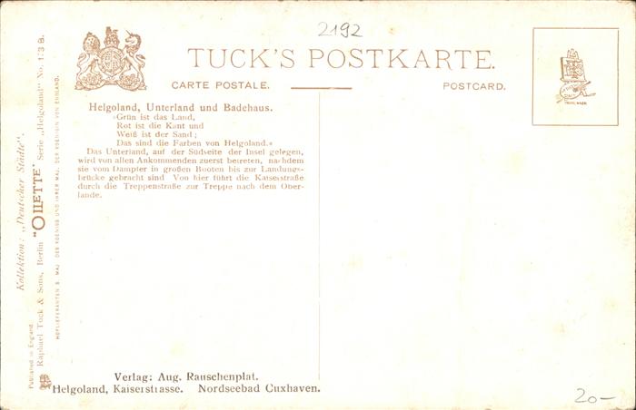 41231316 HELGOLAND Insel Schleswig-Holstein Unterland Boote Segelschiff postalisch nicht gelaufen gute Erhaltung Alte Ansichtskarte Postkarte Lies Katcode 11110001056025