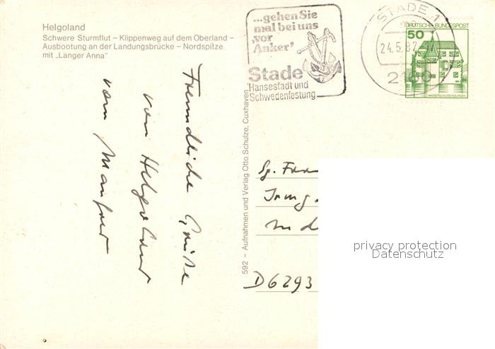 73152122 alte Postkarte Helgoland Klippenweg Landungsbruecke Nordspitze Lange Anna Sturmflut postalisch gelaufen Erhaltung siehe scans [KathaD81] KatCode: 11110001056025