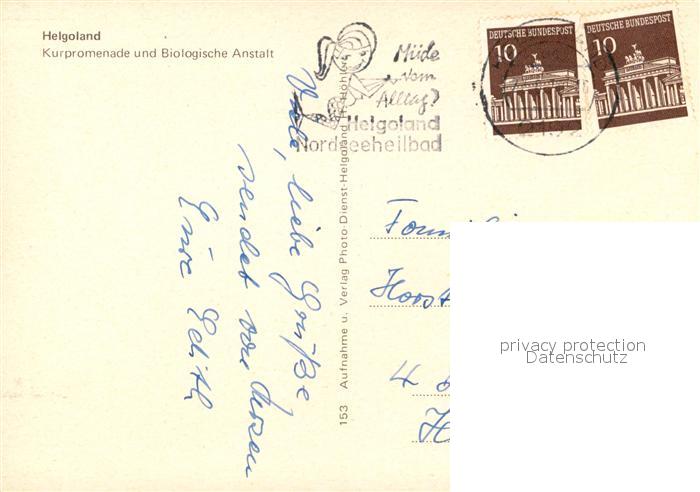 73158840 alte Postkarte Helgoland Kurpromenade Biologische Anstalt postalisch gelaufen Erhaltung siehe scans [FriedD77] KatCode: 11110001056025
