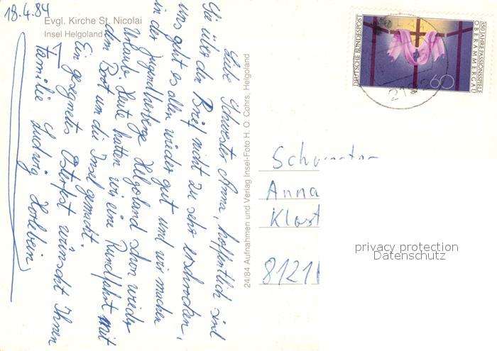 73158997 alte Postkarte Helgoland Sankt Nicolai Altarraum postalisch gelaufen Erhaltung siehe scans [KathaD81] KatCode: 11110001056025