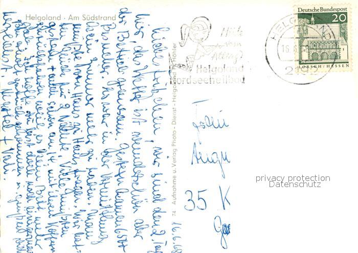73037870 alte Postkarte Helgoland Suedstrand postalisch gelaufen Erhaltung siehe scans [KathaD81] KatCode: 11110001056025