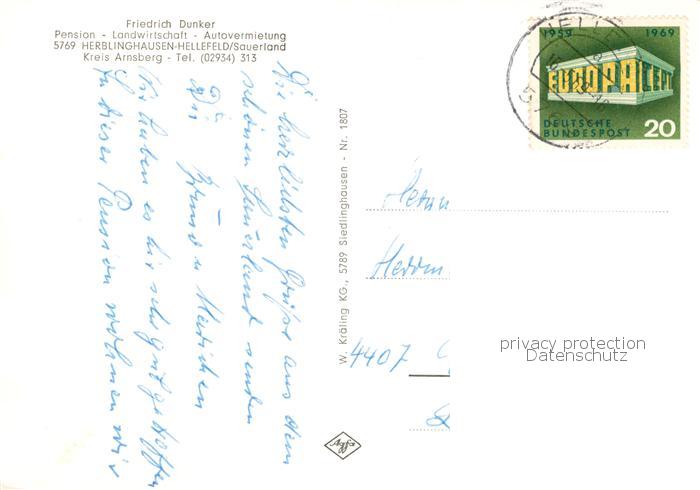73852832 alte Postkarte Hellefeld Pension Haus Duenker Gastraeume postalisch gelaufen Erhaltung siehe scans [WerneD78] KatCode: 11110005958044