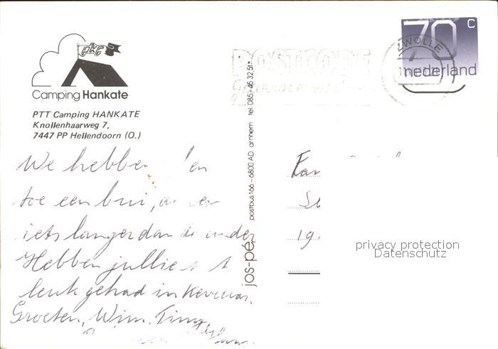 old postcard Hellendoorn Camping Hangkate postalisch gelaufen Erhaltung siehe scans