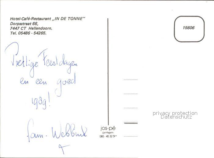 Hellendoorn Hotel Cafe Restaurant In de Tonne postalisch nicht gelaufen Erhaltung siehe scans
