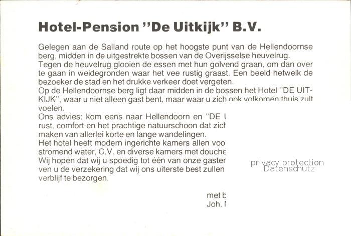 Hellendoorn Hotel De Uitkijk postalisch nicht gelaufen Werbekarte (keine Postkarte) Erhaltung siehe scans