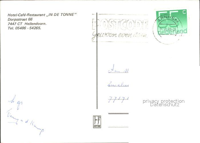 old postcard Hellendoorn Hotel Restaurant In de Tonne postalisch gelaufen Erhaltung siehe scans