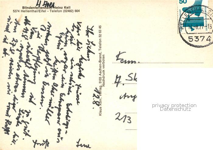 73064443 alte Postkarte Hellenthal Eifel Blindenferienhaus Rheinland postalisch gelaufen Erhaltung siehe scans [NatalD47] KatCode: 11110005366020