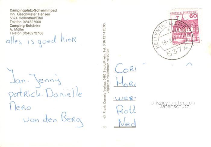 72942102 alte Postkarte Hellenthal Eifel Campingplatz Schwimmbad Talsperre Stausee postalisch gelaufen Erhaltung siehe scans [FriedD77] KatCode: 11110005366020