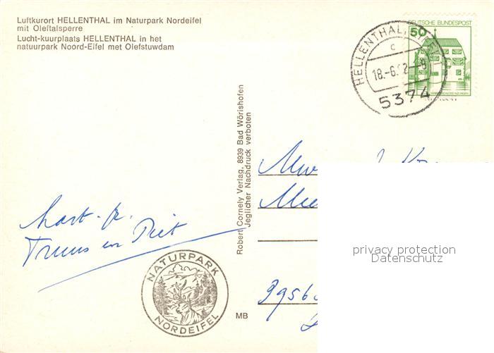 73313704 alte Postkarte Hellenthal Eifel Fliegeraufnahme postalisch gelaufen Erhaltung siehe scans [LiesaD40] KatCode: 11110005366020