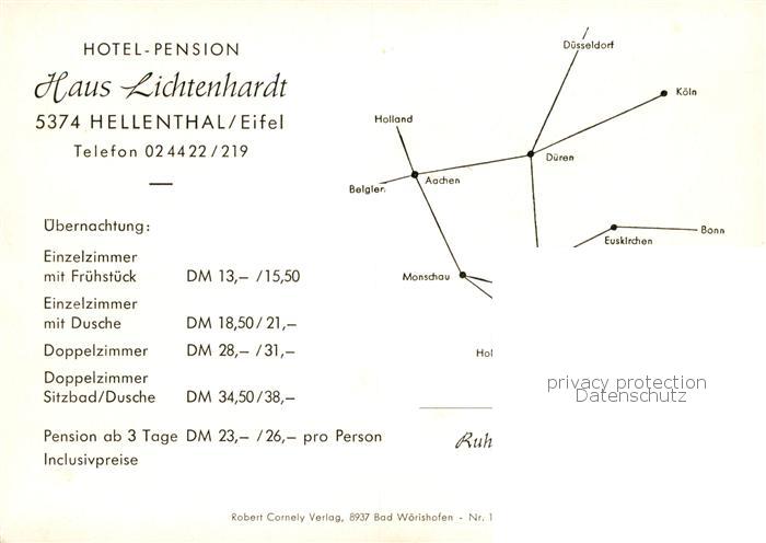 73813937 Hellenthal Eifel Hotel Pension Haus Lichtenhardt postalisch nicht gelaufen Werbekarte (keine Postkarte) Erhaltung siehe scans [WerneD78] KatCode: 11110005366020