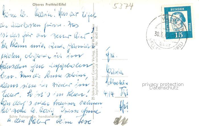 73689851 alte Postkarte Hellenthal Eifel Landschaftspanorama Oberes Prethtal postalisch gelaufen Erhaltung siehe scans [FriedD77] KatCode: 11110005366020