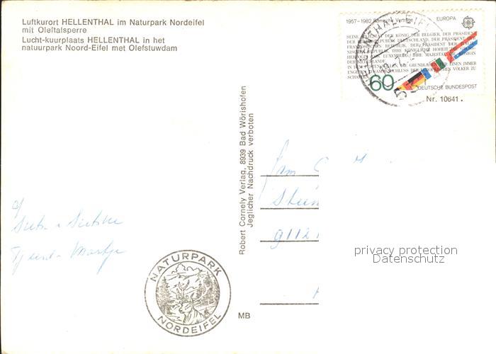 72241820 alte Postkarte Hellenthal Eifel Obertalsperre postalisch gelaufen Erhaltung siehe scans KatCode: 11110005366020