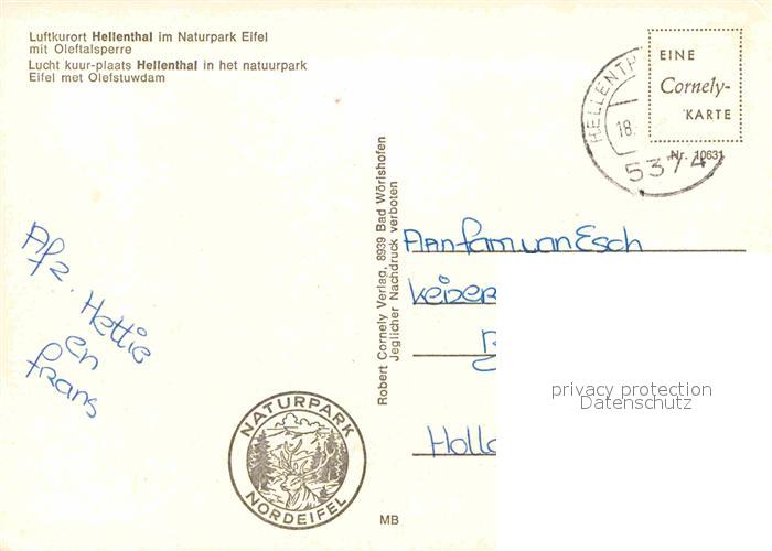 72883827 alte Postkarte Hellenthal Eifel Oleftalsperre Pretbach postalisch gelaufen Erhaltung siehe scans [LiesaD40] KatCode: 11110005366020