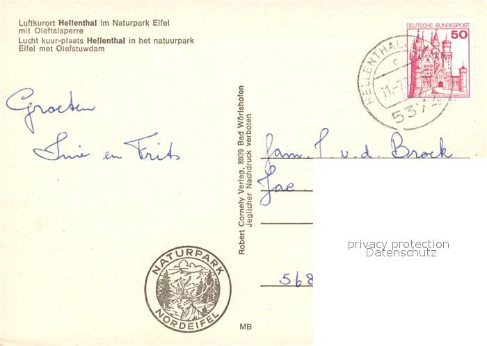 73306115 alte Postkarte Hellenthal Eifel Prethbach Panorama Oleftalsperre Kath Kirche postalisch gelaufen Erhaltung siehe scans [WerneD78] KatCode: 11110005366020