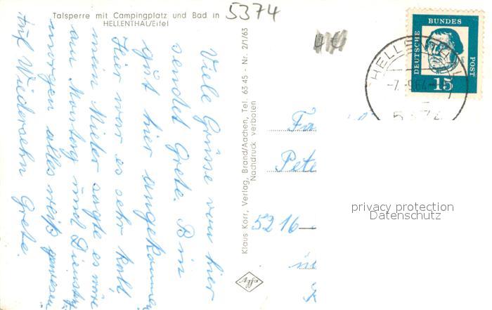 73689852 alte Postkarte Hellenthal Eifel Talsperre mit Campingplatz und Freibad postalisch gelaufen Erhaltung siehe scans [FriedD77] KatCode: 11110005366020